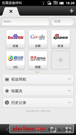 說完了小米手機(jī)系統(tǒng)的兩大特點(diǎn),我們從下面幾個(gè)功能來介紹小米手機(jī)的系統(tǒng)。小米手機(jī)的自帶瀏覽器采用標(biāo)簽式的瀏覽方式,可以很方便的進(jìn)行切換頁面操作。