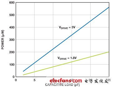 圖2. 典型接口功耗與容性負(fù)載的關(guān)系