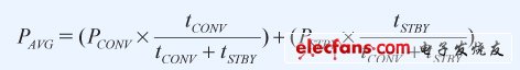 ADC的平均功耗是轉(zhuǎn)換期間所用功耗、不轉(zhuǎn)換時(shí)所用功耗以及各模式下所用時(shí)間的函數(shù),如等式1所示。