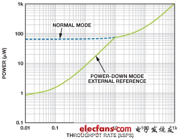 圖1. AD7091R ADC功耗與吞吐速率的關(guān)系