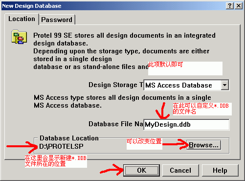 打開Protel99se,在上面所建立的文件夾中以你的姓名為文件名建立一個