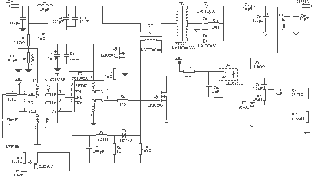 2555 ADP1053降壓預穩壓器的典型應用,采用固定PWM全橋拓撲結構,具有同步整流功能。 ADP1053基于電壓模式PWM架構,是一款靈活的專用數字控制器,專為隔離式和無隔離式DC-DC電源應用而設計