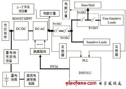 微網逆變器系統將可再生能源(如太陽能,風能,水能,地熱能,生物質能等)轉變為與電網同頻、同相的交流電,優先輸送給當地負荷供電,剩余的電能饋入電網。微網逆變器系統主要包括:光伏組件、蓄電池組、蓄電池充放電設備、DC/DC變換器、微網逆變器、靜態開關等。