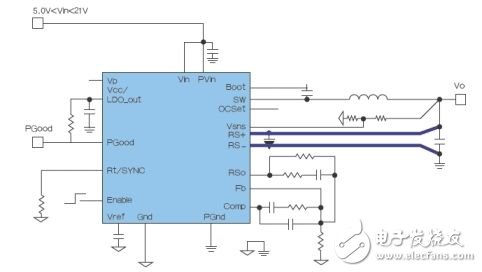 的噪聲注入并節省了電容器,最終簡化了布局。 利用帶有真正差分遠程檢測功能的大電流IR3847,IR解決了受到散熱和空間限制的高密度和大電流應用方面的挑戰。當與標準的分立解決方案相比時,IR3847將