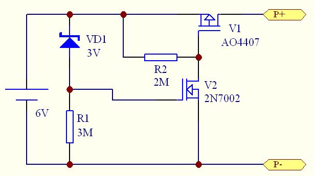 電壓較低時,R1上的壓降低于V2的門嵌電壓,V1關(guān)斷。