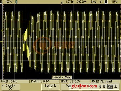 各位,一個問題想請教大家:一臺100kw逆變器,直流端輸入電壓正常逆變器啟動,觀察輸出電壓電流波形,電流發生嚴重畸變。用示波器觀察igbt驅動波形,發現下橋臂的pwm波有一段時間無波形。但是當