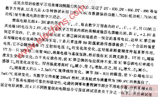數(shù)字萬用表測溫附加電路