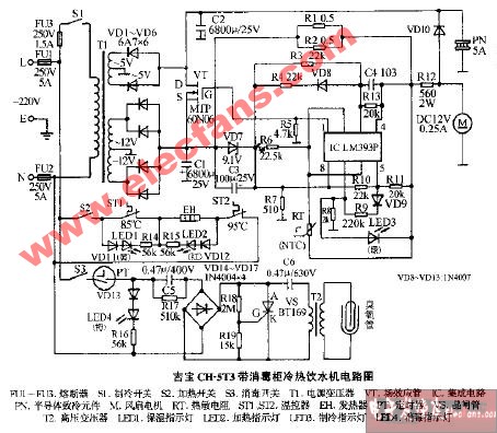 吉寶CH-5T3帶消毒柜冷熱飲水機電路圖