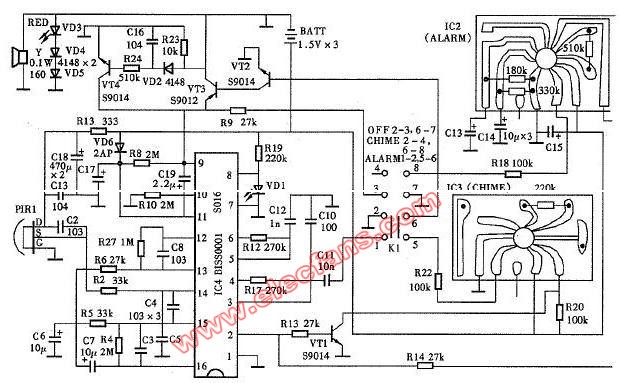 SNS-200PI熱釋電紅外報警器電路圖