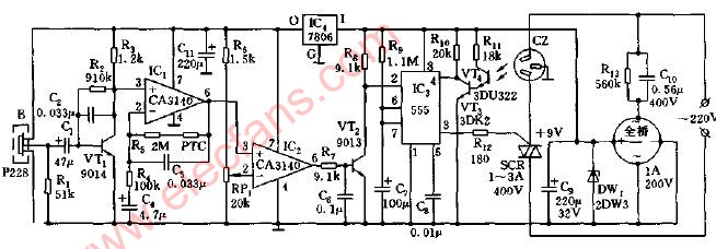 采用P228熱釋電紅外控制照明燈電路圖