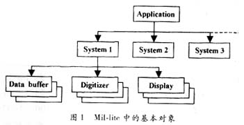Mil-lite編程需要包含幾個基本對象:application,system,buffer,display,digitizer。它們之間的從屬關系如下圖所示。另外還有一個graphic對象。
