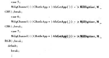 基于動態鏈接庫的VC++編程的具體操作是在MIL 7 DEV P或U Matrox圖像庫(MIL)函數庫編程的基礎上,借鑒利用MIL LITE 7 Mil-lite卡控制庫編程例子中利用VC++編程,不是把VC++單一作為編譯環境,而是利用MFC編程,并且在界面上提供底層接口。這樣既可以充分利用動態鏈接庫中的函數,還可以充分利用MFC資源,特別是可以不需要修改底層程序,就可以利用運行界面上的程序接口修改底層程序。例如對采集通道的修改,對DCF配置文件的修改等,都可以采取這種方法。進一步可以在界面上提供修改算法的接口,修改或者增加圖像處理的算法。這樣,不僅使編程變得更加簡單,并且便于程序的穩定,便于程序的移植,不了解Mil-lite編程的工程人員也可以很快掌握一般性的操作。