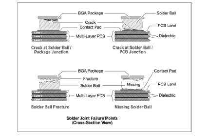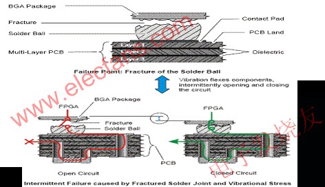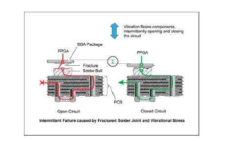 ,包括很多商用產品和國防產品,并且多數FPGA使用的是BGA封裝形式。BGA封裝形式的特點是焊接球小和焊接球的直徑小。當FGPA被焊在PCB板上時,容易造成焊接連接失效。焊接連接失效可以“致命“一詞來