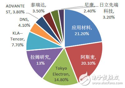 2015年全球半導體設備出貨金額為365.3億美元,低于2014年的375.0億美元(約1.23兆元臺幣)銷售額。在全球格局中,美國應用材料公司獲得21.2%份額,阿斯麥占20.1%,東京電子14.8%、拉姆研究13%,絕大多數(shù)集中在美國、荷蘭、日本等地,沒有中國廠商的身影;從結構類型來看,84%市場為前端晶圓制程設備,封裝和測試設備分別占7%和9%。另外從絕大多數(shù)生產用原材料看也是被日本、美國和歐洲國家壟斷,國內廠商突破還需要較長時間。