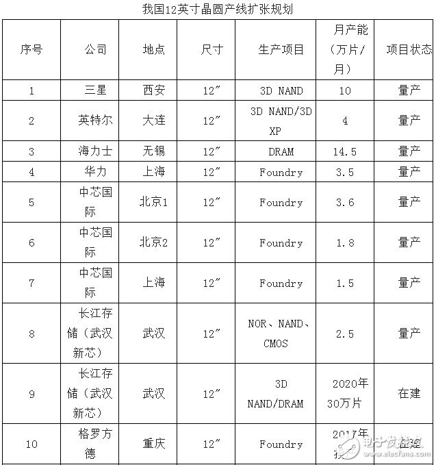 目前已有三星、英特爾、海力士、中芯國際等8條量產的12英寸晶圓產線,合計產能達41.4萬片/月;新建產能中臺積電、格羅方德、中芯國際等合計約為30萬片/月,產能擴張72.5%。
