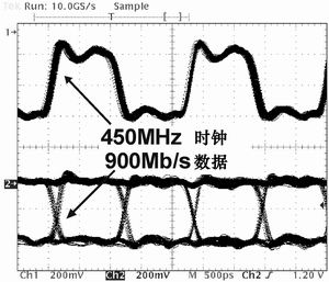 本集成電路是一個單芯片中的完整交換板,具有160Gb/s的吞吐量和不高于15W的功耗,并支持10Gb/s到80Gb/s的線路卡。本集成電路使可線性升級的系統的直接設計(straightforward design)具有160Gb/s到1.28Tb/s的吞吐量。圖5a和圖5b為測量得出的眼圖。