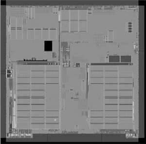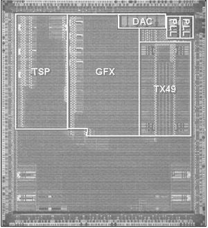 在這個業內首個SoC芯片的開發過程中,同時開發出了基于電路并確保無沖突翻轉的三態總線構架,可以把整個頂層布線信號的數量減少3/4如每個三態總線的節點數從5400減少到了1400,使該設計能夠在現有的8層金屬中實現。