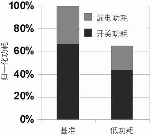 該設計方法論經過擴展,能在自動布局布線模塊中支持多個電壓域(包括電壓接口單元的管理)及多個開啟電壓電路,可以降低動態功耗和漏電流。在一個包含大概28萬個元件(以及額外的SRAM塊)、工作頻率為300MHz的設計時鐘的開發過程中,分析結果表明,該方法可降低42%的功耗(其中輸入/輸出單元功耗的降低約占50%)(見圖8a和8b)。
