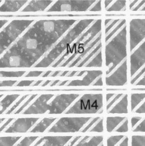 M6到M8上符合物理規則的拓撲一般都用于此類集成電路中的電源分布(主要因為這些金屬層有著大概低于50%的電阻系數)。