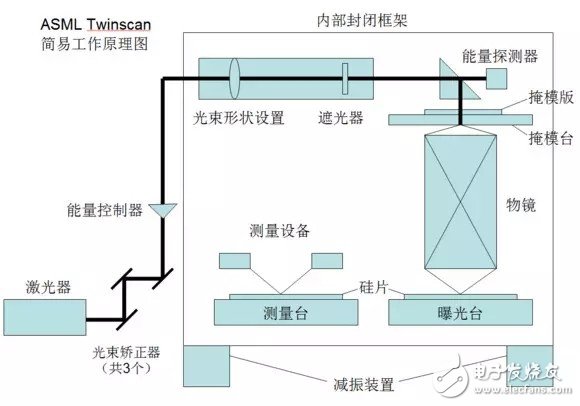 上圖是一張ASML***介紹圖。下面,簡單介紹一下圖中各設備的作用。