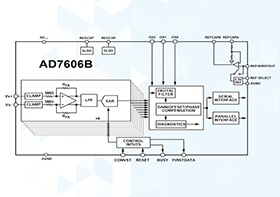 信號(hào)處理包括高速數(shù)據(jù)采樣(220 kSPS)、4096個(gè)時(shí)間采樣記錄長(zhǎng)度、濾波、窗口、快速傅立葉變換(FFT)、用戶可配置頻譜或時(shí)間統(tǒng)計(jì)報(bào)警以及錯(cuò)誤標(biāo)志。串行外設(shè)接口(SPI)可以訪問(wèn)包含振動(dòng)數(shù)據(jù)和各種用戶可配置功能的寄存器結(jié)構(gòu)。