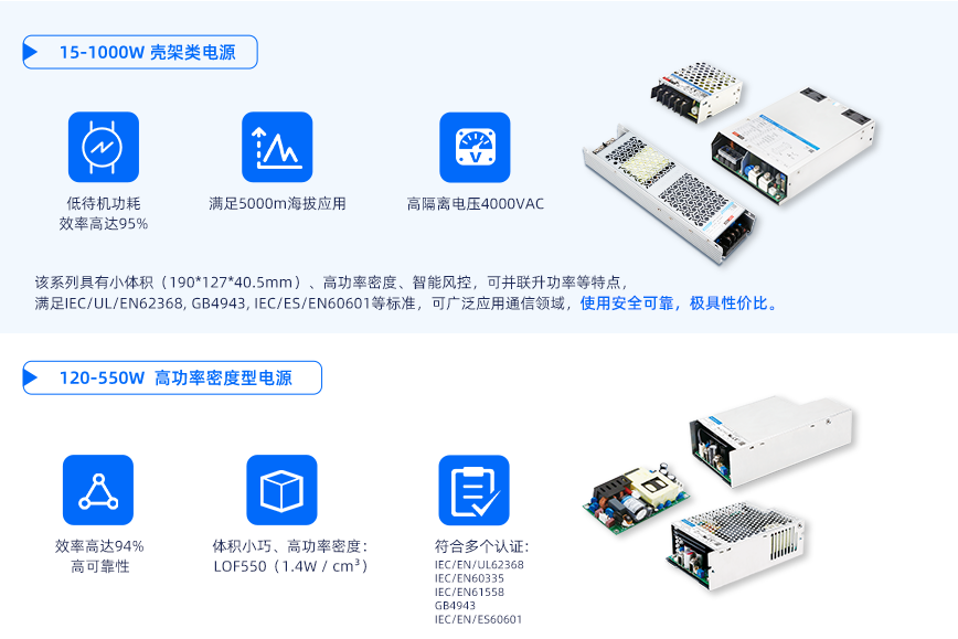 目前,網(wǎng)絡(luò)在人們的日常生活中發(fā)揮了越來越重要的作用,隨著移動互聯(lián)網(wǎng)、云計算、5G推動全球數(shù)據(jù)量進行指數(shù)級增長,對網(wǎng)絡(luò)傳輸通信技術(shù)及器件也提出了更高的要求。針對通信設(shè)備,金升陽提出了高品質(zhì)的電源及配套產(chǎn)品解決方案,具備高可靠性、高功率密度等優(yōu)勢,適應(yīng)復(fù)雜的應(yīng)用環(huán)境,助力設(shè)備穩(wěn)定可靠運行。金升陽通信行業(yè)電源包括DC/DC磚類電源,LM/LMF系列機殼開關(guān)電源,LOF系列高功率密度電源等。