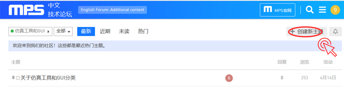 第二步:在MPS論壇相應板塊下,按照發帖格式,帶試用截圖在仿真工具與GUI板塊下發帖分享工具試用體驗、想法或建議: