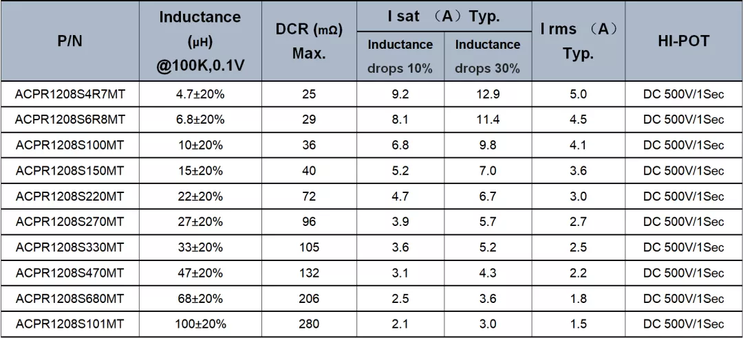 耦合電感ACPR1208S系列,具高效率,高耦合,高額定電流,低直流電阻等特性,產品滿足AEC-Q200認證,能夠應用于SEPIC,Zeta,反激等拓撲結構電路,同時可作共模,變壓器使用。