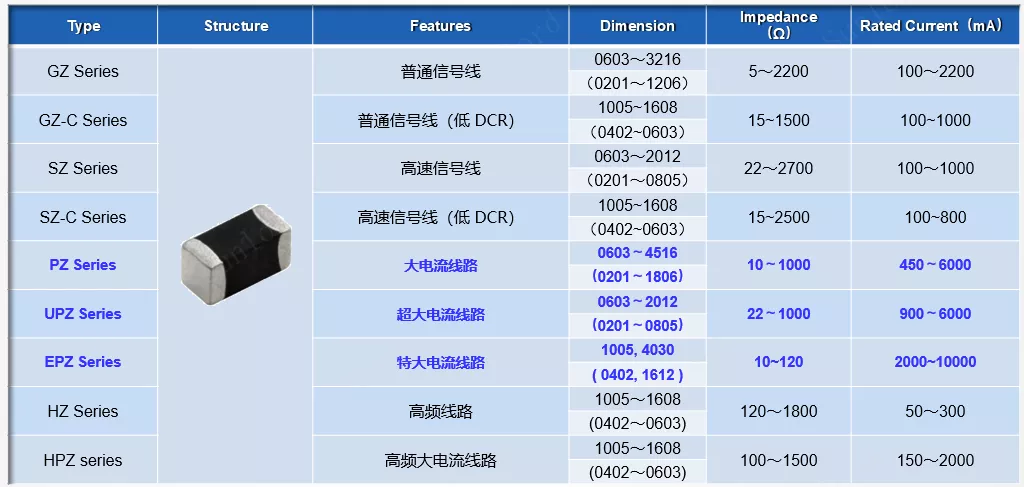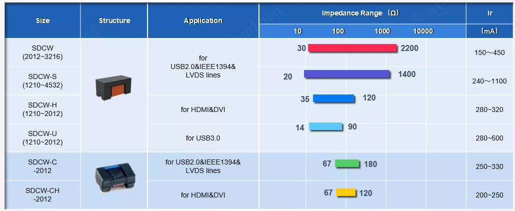 服務器接口較多,采用共模扼流器濾除共模噪聲成為一個必選項。如下為順絡繞線共模扼流器的產品品類表。