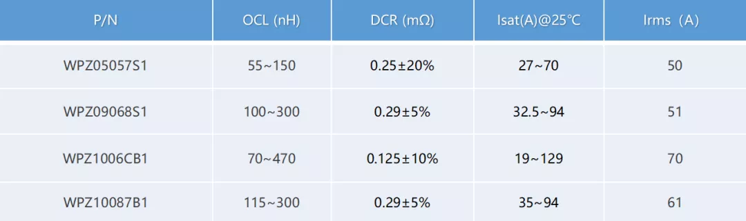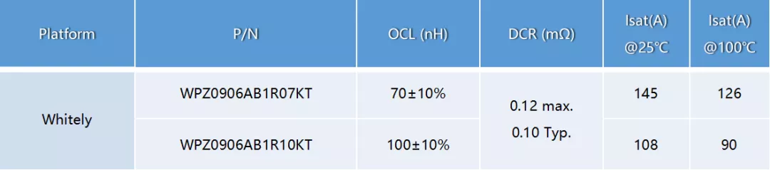 在服務器的CPU DC/DC供電電路中,順絡針對目前intel CPU Whitely平臺有針對性的產品做推薦。如下表所示: