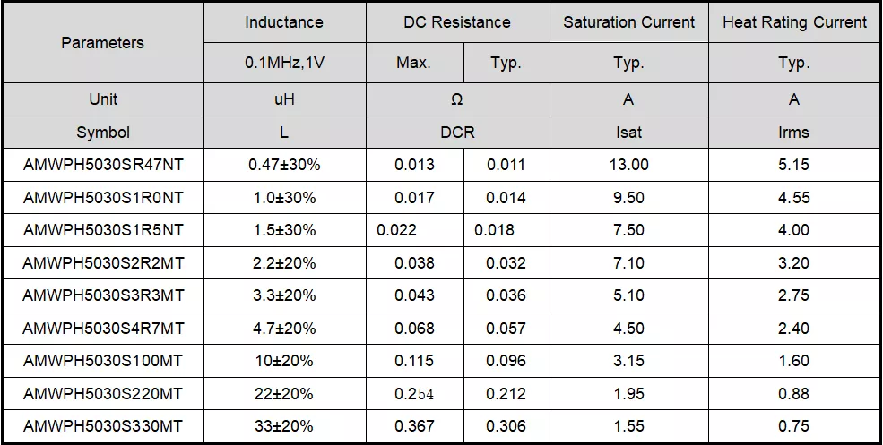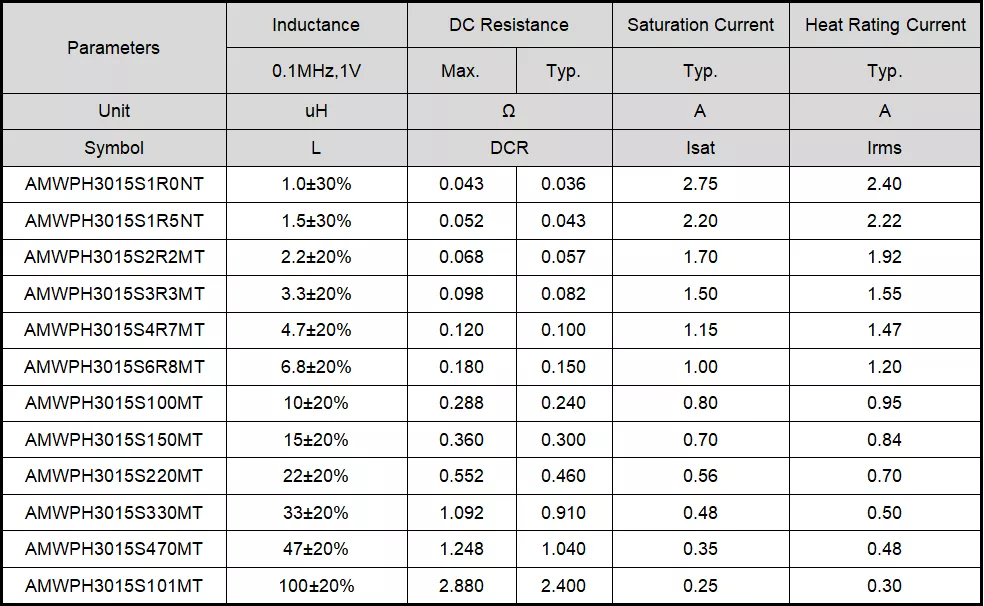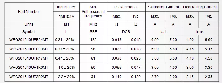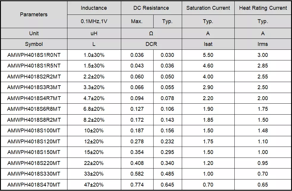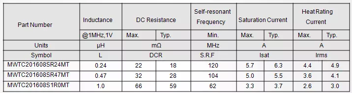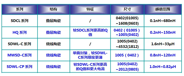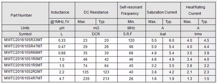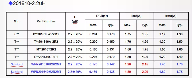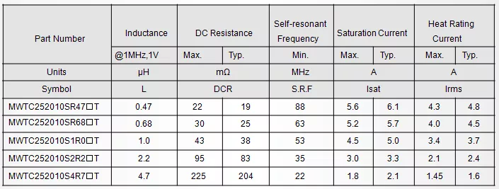 當然,順絡組裝類功率電感不只如上表格所列出的尺寸,還有其他更多的選擇,如下表所示: