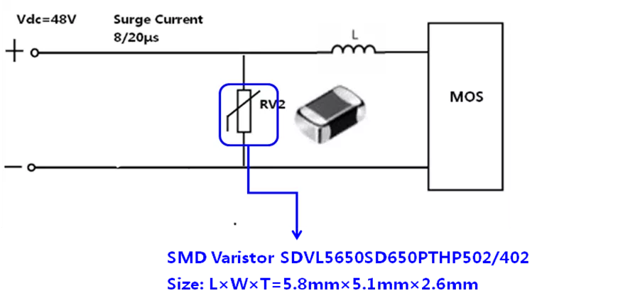 在基站電源,服務器電源,安防攝像頭電源等位置,尤其是48V電源端口,要求端口要過6KV,10/700μs電壓波。普通的貼片壓敏電阻遠遠達不到浪涌脈沖耐量,SDVL-HP高能型系列具有小體積,優異限壓比,抗浪涌能力強等優點,非常適用于雷電及浪涌過電壓防護。