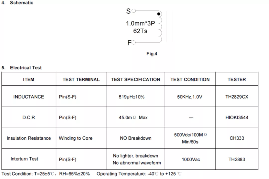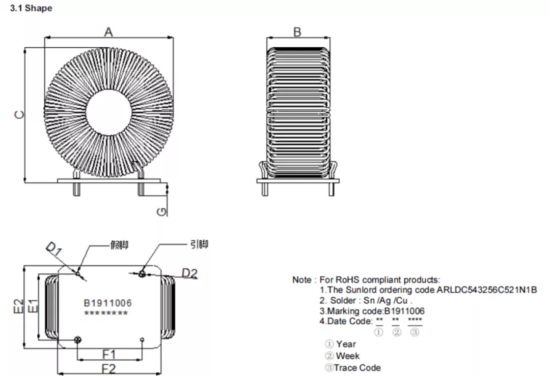 順絡電子的PFC功率電感型號為ARLDC543256C521N1B,部分規格如下,