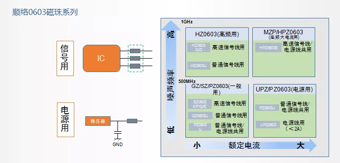 順絡電子推出的鐵氧體磁珠產品,品類齊全,可應用在信號線,電源線,音頻線等的電路中,用于EMI抑制。