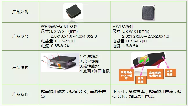 在Cat1電源電路中,順絡推薦WPN/WPG及MWTC系列功率電感。WPN/WPG系列功率電感,采用高性能金屬粉芯磁芯,加扁平線繞制,涂覆屏蔽磁性膠水,增加飽和電流;側面+底面電極,減小DCR,增加產品焊接性。而MWTC系列采用T-Core磁芯+扁平線繞制+一體成型工藝,具有優良的飽和特性及超低DCR,特有的鍍銅/鎳/錫電極方案,可增強附著力,降低產品內阻。