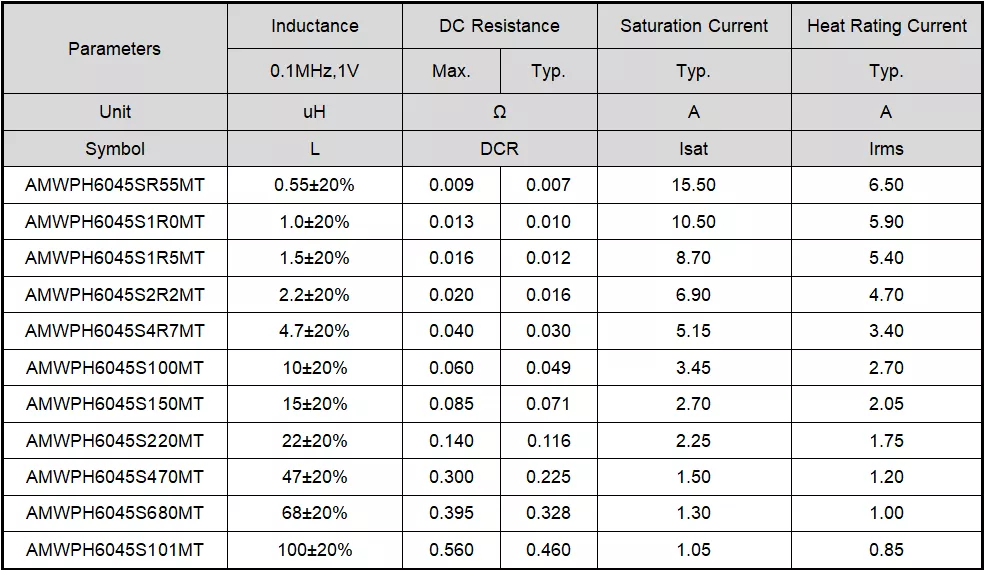 詳細參數請在本公司網站www.sunlordinc.com產品目錄中下載。
