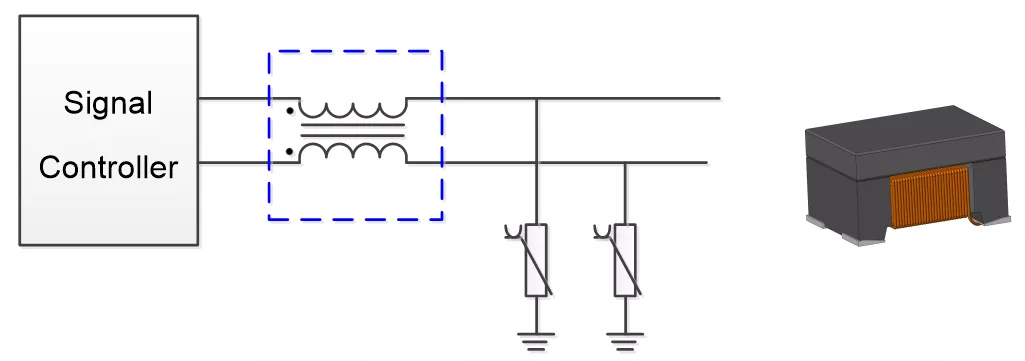 主要應用于汽車CAN BUS總線及電源線的共模噪音濾除。