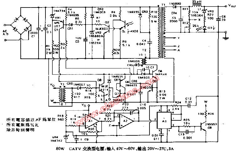 80W CATV交換型電源輸入40V-60V,輸出20V-2