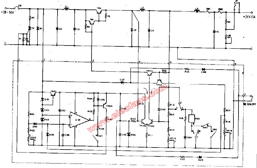 如圖所示,24v轉12v轉換器電路無非是一個集成的可調電壓調節器,作用于一組并聯的功率晶體管。這些晶體管可以說執行著繁重的任務,而調節器則負責控制它們。