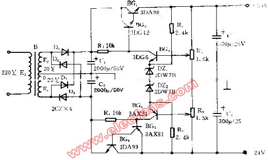 24V對偶式穩(wěn)壓電源電路