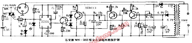 電子發燒友網>電子技術應用>電路原理圖>電源>電源電路圖>樂寶牌WN-D03型全自動電冰箱保護器