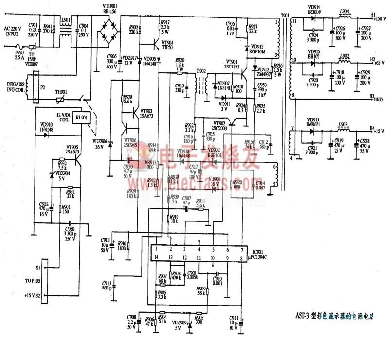 AST-1型彩色顯示器電源電路圖