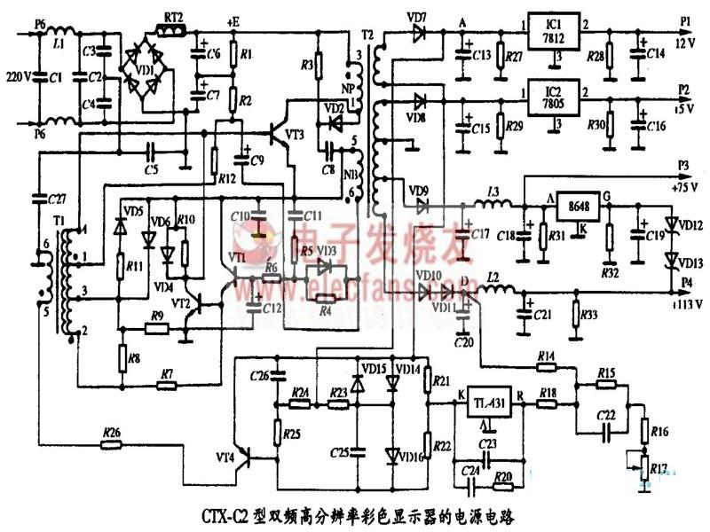 CTX-C15型VGA高分辨率彩色顯示器電源電路圖