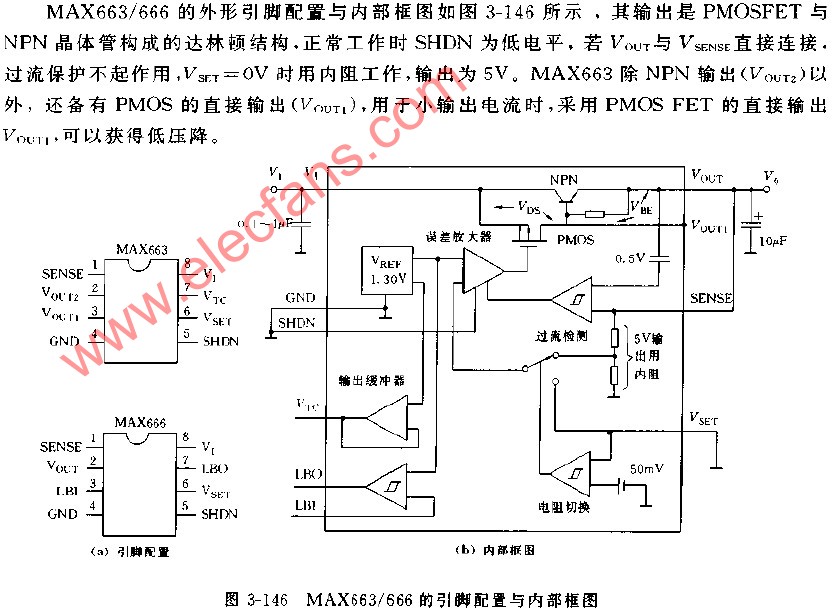 MAX663 MAX666引腳配置與內(nèi)部框圖
