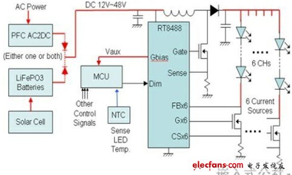 51DC或電池輸入對6串LED分別做恒流控制的電路圖