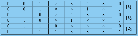 (3)比較Y和Y′兩式中最小項(xiàng)的對應(yīng)關(guān)系。設(shè)Y=Y(jié)′,A=A2 ,B=A1 ,C=A0 ,Y′式中包含Y式中的最小項(xiàng)時(shí),數(shù)據(jù)取1,沒有包含Y式中的最小項(xiàng)時(shí),數(shù)據(jù)取0,由此得