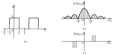 例6-1-2?? 周期脈沖信號如圖6-1-4a所示,求該信號的頻譜函數(shù)