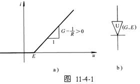圖11-4-2a的非線性電阻特性曲線用折線表示后,等值電路如圖11-4-4所示。