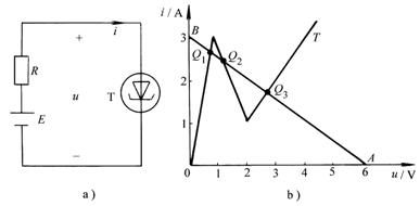 ,與隧道二極管T連接,后者的特性可用三段近似直線表示(圖11-4-3b),求工作點(diǎn)。