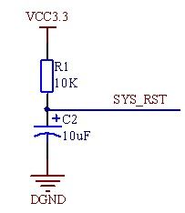這個(gè)電路在上電初始過(guò)程中,可以起到延緩SYS_RST信號(hào)電壓從DGND突變到VCC3.3。其延時(shí)時(shí)間的計(jì)算方法如下: